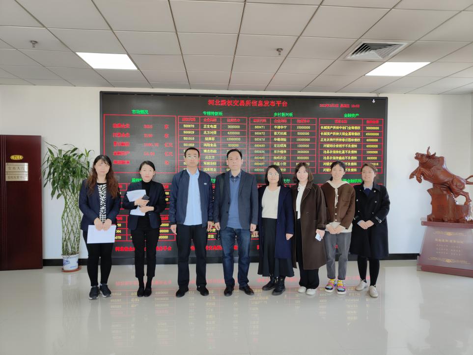 3月3日,國際法商系金融管理教研室榮冀川老師帶隊和賈竟祎、吳婷婷、徐莖桃、劉欣四位老師走訪了河北股權交易所。