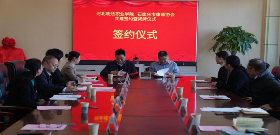 公共法律教學部、繼續教育部、涉法系部負責同志和石家莊市律師協會分管副會長、秘書處共計19人參加簽約揭牌儀式。