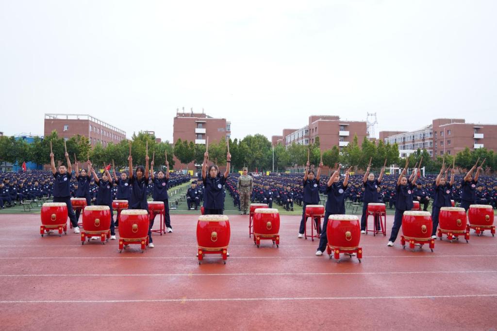 軍訓結業儀式在激昂的常山戰鼓表演中拉開帷幕。
