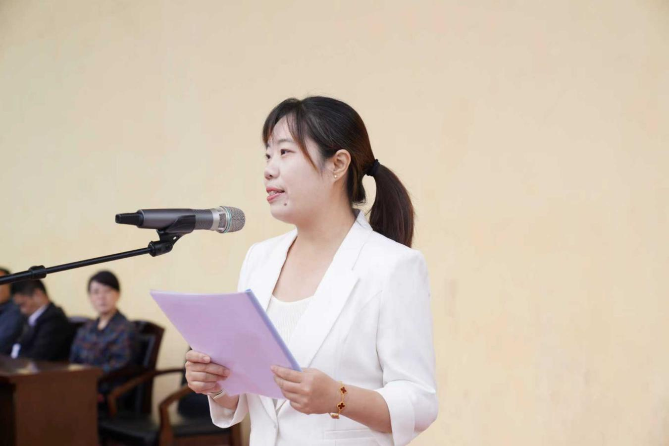 優秀教師代表建筑工程與法務系劉琳老師和應用法律系2025級法律事務(律師方向)三班朱冉祺同學、國際法商系2024級國際經濟與貿易一班趙佳慧同學、國際交流系2016級校友王春輝同學發言。分別表達了認真執教和刻苦學習、努力成才的決心,分享了寶貴經驗。他們的發言飽含深情、充滿哲理,體現了對全體新同學的殷切期望和拳拳愛護之心。