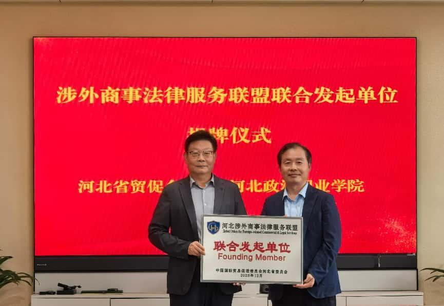 發(fā)布時(shí)間:2025年09月25日 訪問(wèn)次數(shù): 來(lái)源:9月23日,我校舉行涉外商事法律服務(wù)聯(lián)盟聯(lián)合發(fā)起單位揭牌儀式,并圍繞相關(guān)議題開(kāi)展專(zhuān)題研討。聯(lián)盟牽頭單位河北省貿(mào)促會(huì)法律部部長(zhǎng)孫保國(guó)一行三人來(lái)校交流,與校黨委委員、副院長(zhǎng)馮兆蕙共同為聯(lián)合發(fā)起單位揭牌。